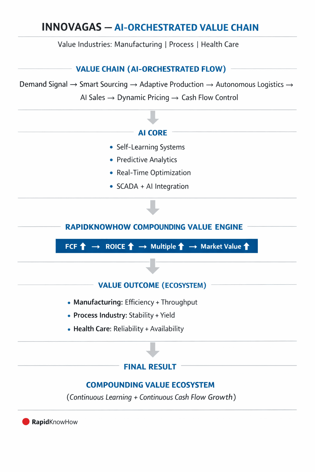AI orchestrates the entire value chain → improves decisions in real time → compounds Free Cash Flow → drives exponential market value.