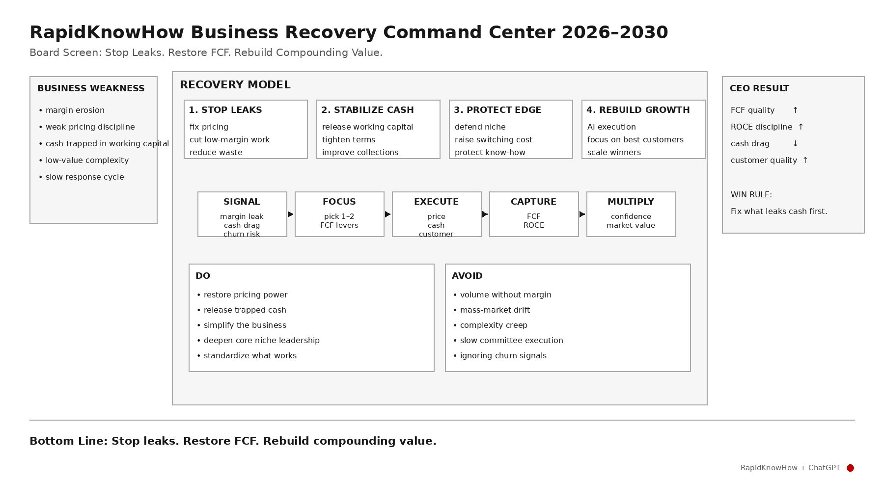 RapidKnowHow optimizes cash-flow under stress, which is what Boards actually care about.