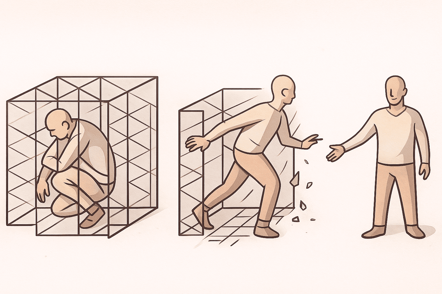 Der Alltag ist zu einer Abfolge von funktionalen Handlungen geworden – Arbeit, Einkauf, Heimkehr – ohne Begegnung, ohne Resonanz. Der Mensch hat das „Ich sehe Dich“ verlernt.