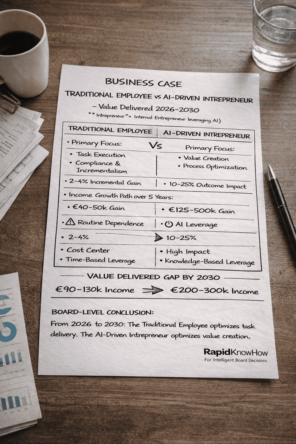 | Metric | Traditional Employee | AI-Driven Intrepreneur |