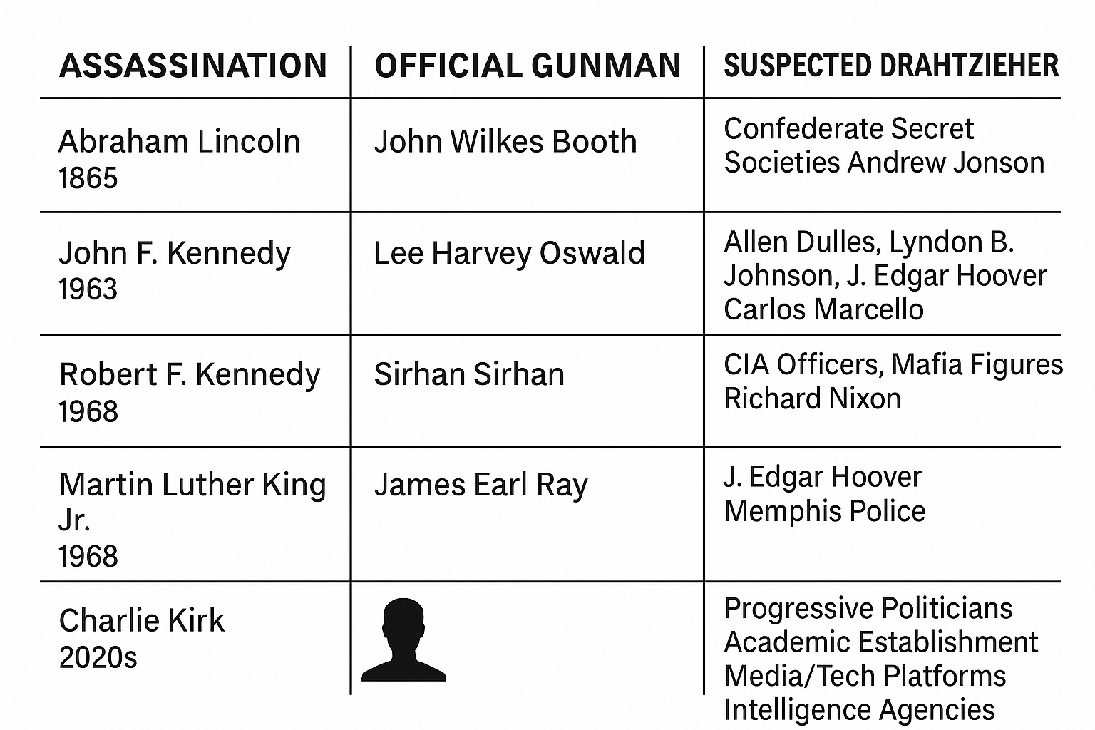 - Framed “lone wolves” → creates a convenient narrative (Oswald, Sirhan Sirhan, James Earl Ray).