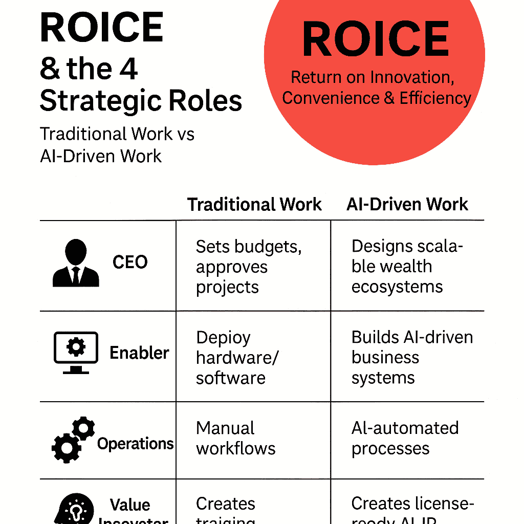 The highest ROICE roles are those who convert knowledge into reusable, scalable, monetizable assets β especially AI-powered Licensing Systems.
