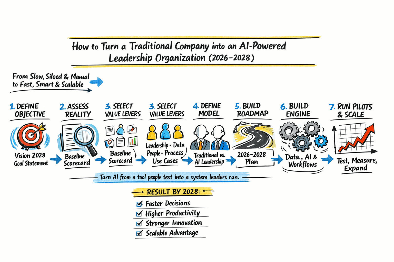 How to Turn a Traditional Company into an AI-Powered Leadership Organization (2026–2028)