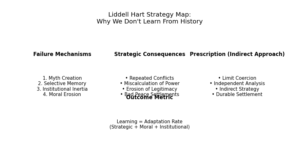 Liddell Hart warns that organizations (states or companies) misread history when they choose convenient narratives over hard diagnosis. These cases illustrate the costs of embracing strategic myths instead of analytics and balance-focused strategy.