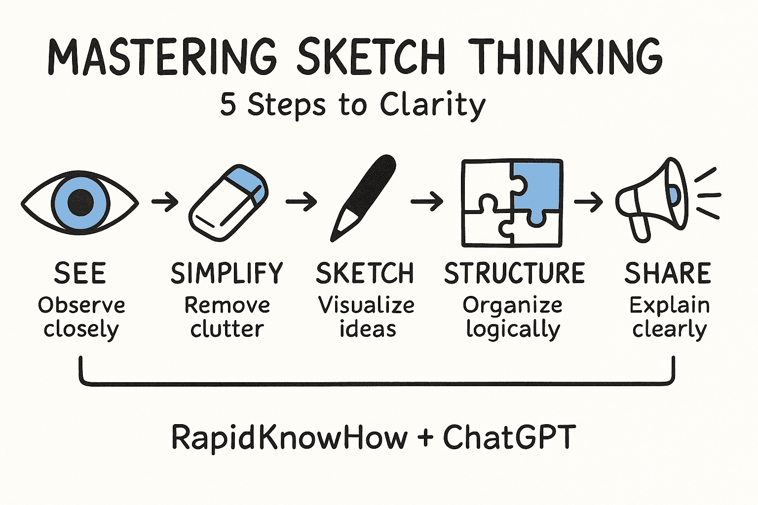 Sketch Thinking combines Stephen Few’s clarity, Dan Roam’s Show & Tell logic, and Mike Rohde’s hand-drawn storytelling.