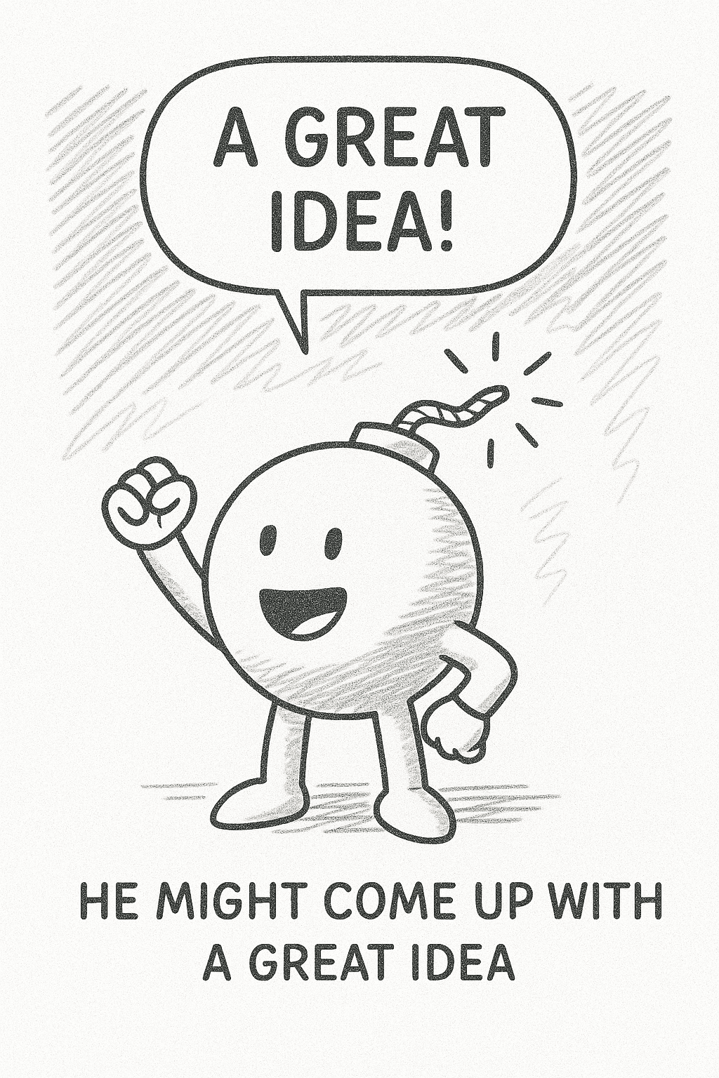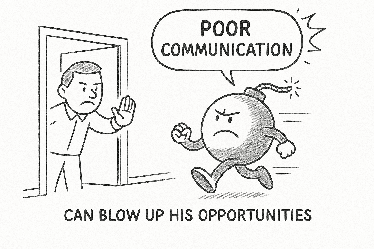 A 6-panel comic about a bad communicator who learns to connect, not detonate.