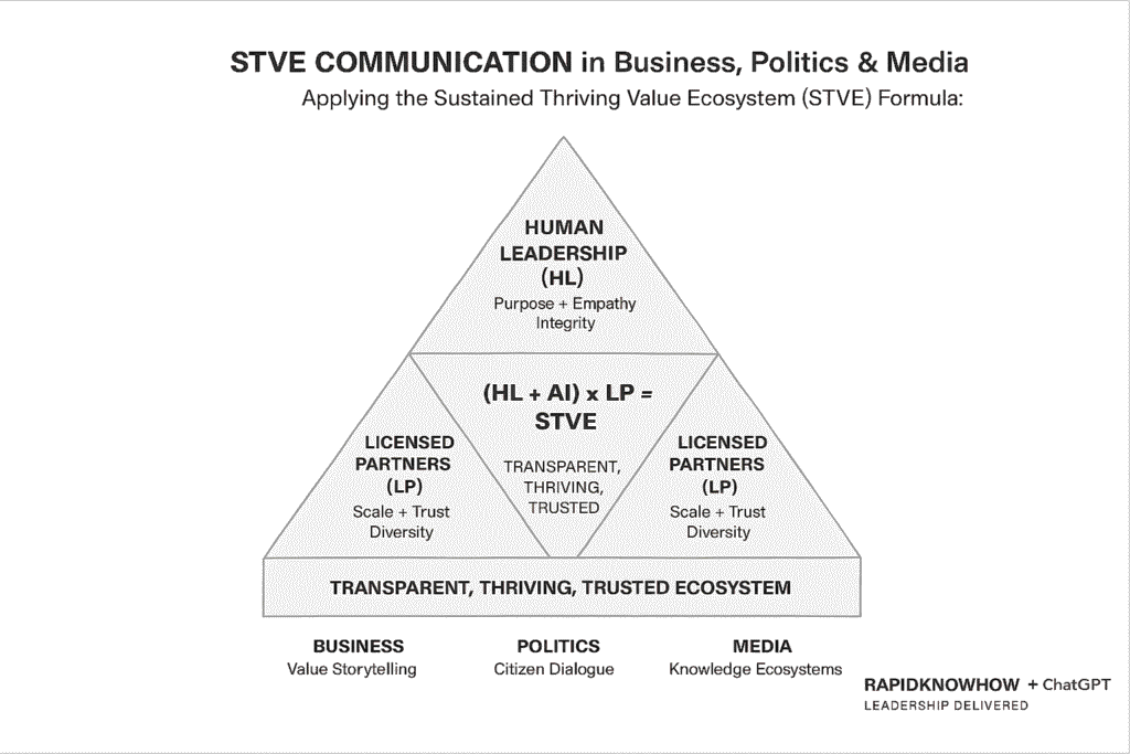 Become a Thriving Communication Leader by applying the STVE Formula across Business, Politics, and Media.