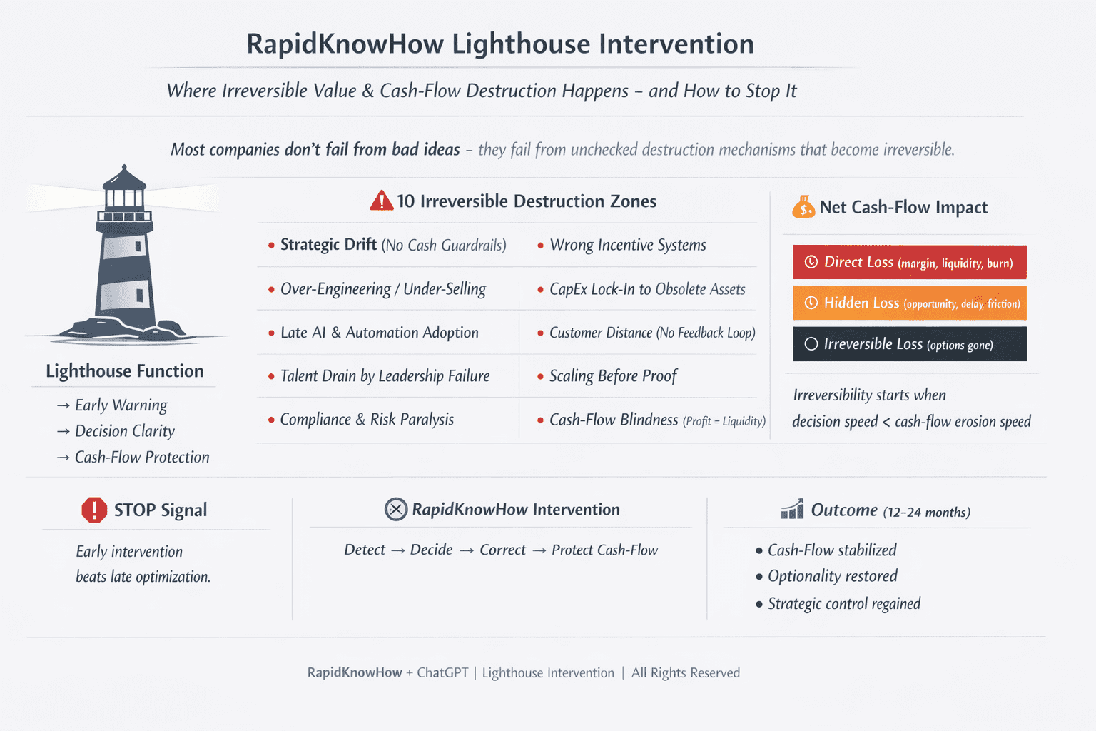 it is destroyed by late decisions, hidden risks, and irreversible commitments.