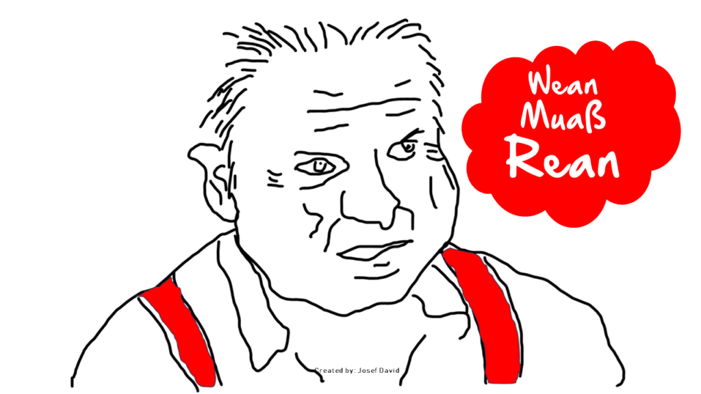 „Ganz einfach: ma nennt’s Zukunftsachse, pickt ein paar grüne Schlagwörter drauf – Nachhaltigkeit, Innovation, Klimaneutralität – und schwupps wird aus’m Betonloch ein Weltwunder. Den Rubel zum Rennen bringen wir mit Förderungen, Sponsoren und Inseraten. Qualtinger hätt g’sagt: ‚Die Wahrheit is a Konstruktion – Hauptsach, des “Gerschtl” rennt!‘“ Blickt stolz auf seine genagelten , handgeschusterten “Bock”.