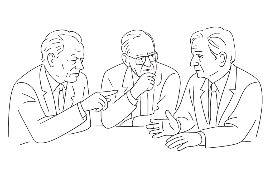 Hier eine fiktionale Zukunftsdialog-Szene, in der drei der prägenden Sozialdemokraten Europas – Willy Brandt, Olof Palme und Bruno Kreisky – im Jahr 2100 zusammensitzen und über die Zukunft ihrer Bewegung beraten. Die Form: halb Essay, halb Theaterstück, am Ende eine Roadmap.