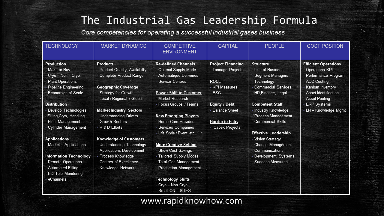 First, I’ve summarized the core compentencies you need for operating a successful industrial gas business.